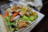 Grilled chicken, romaine lettuce, Parmesan cheese, and Caesar dressing.